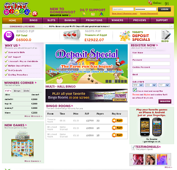 Sign up now with Gone Bingo to win £15 free amount and 900% of massive bonuses on first three deposits and you can also get free reload bonuses on all other deposits. Enjoy daily deposit special bonuses and great cash deals at Gone Bingo. Gone Bingo is the one of the biggest UK bingo sites with large number of opportunities to win real cash offers as the site is designed with classy way with simple tabs to navigate from one place to another place. With licensed in Malta Gone Bingo provides fine selection of bingo games to play at three bingo rooms at 75 ball, 80 ball and 90 ball bingo rooms. Here you can find various deposit bonuses and can play bingo in web or in mobile with single account. Gone bingo is filled with fun filled games where can you play casinos, scratch cards and slots. The ultimate bingo experience will be achieved by playing promotional games online. Slot tournaments, bingo rooms special jackpot promotions and local room special cash pot offers are ready to break. You can get rewarded with special gifts and bonuses each time you login, deposit and wager on all the special games under the unique promotion Farm run and win £250 daily at choose the lucky 5 promotion.