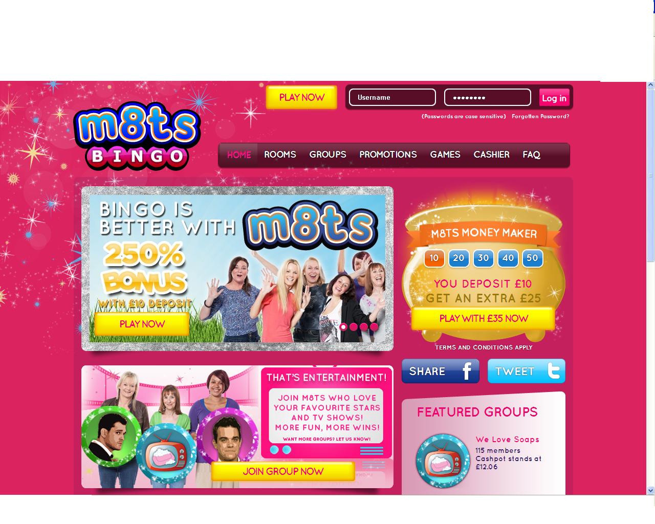 Find out why M8ts Bingo is the best place for your entertainment. You can have the most enjoyable fun time with this great bingo site. The design and the look of the site is also great to spend much time playing all the various bingo online games. Explore the instant games and slot games as well and start playing right away.